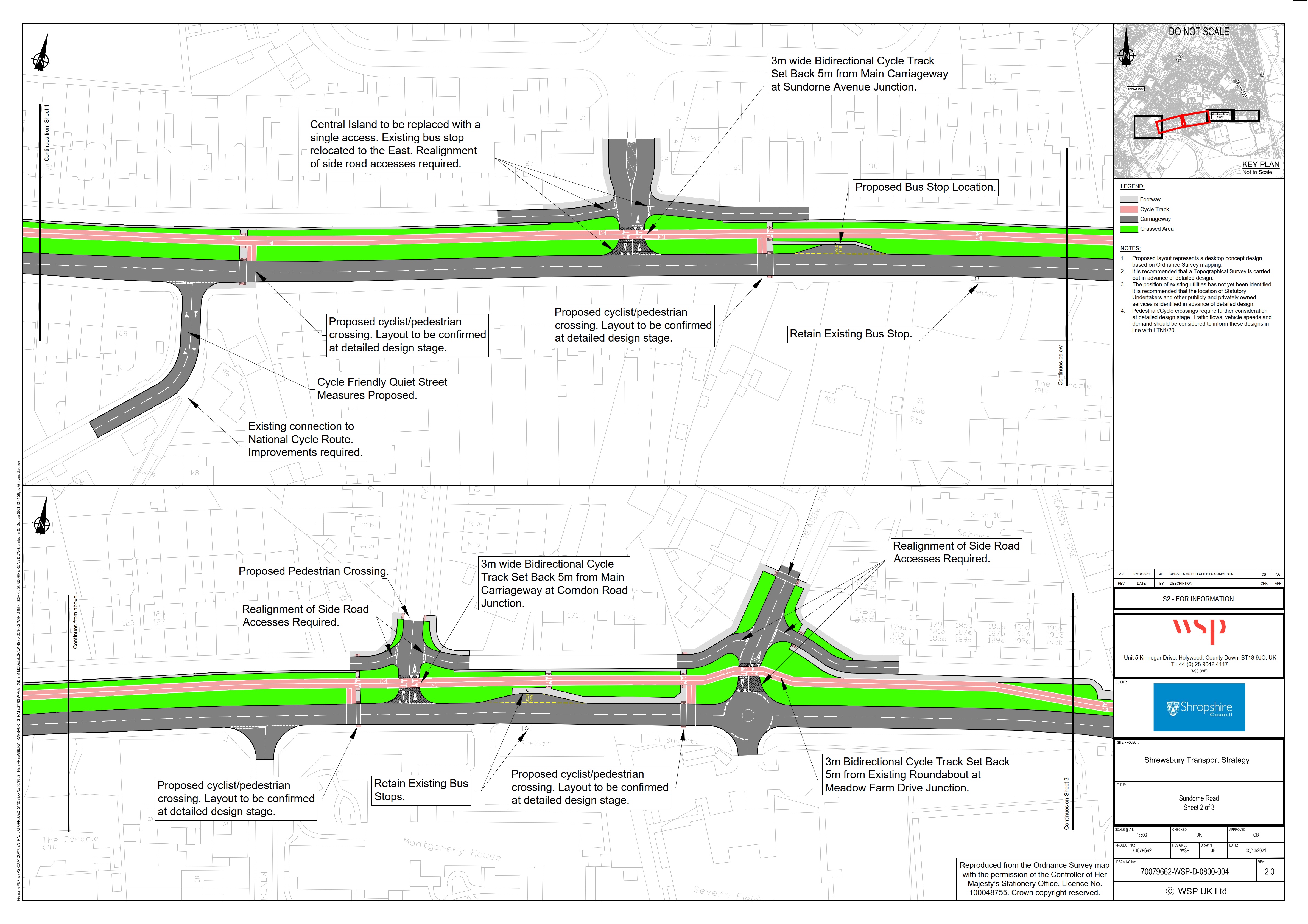 The North West Relief Road will provide a significant opportunity to deliver a step change for transport and connectivity in northeast Shrewsbury. The aspiration is to capitalise on these opportunities and allow local routes within the study area to become safer and more attractive for active travel, making walking and cycling the logical first choice for local journeys. Encouraging sustainable travel in the study area will also reduce traffic movements and support wider air quality and public health targets in north east Shrewsbury.