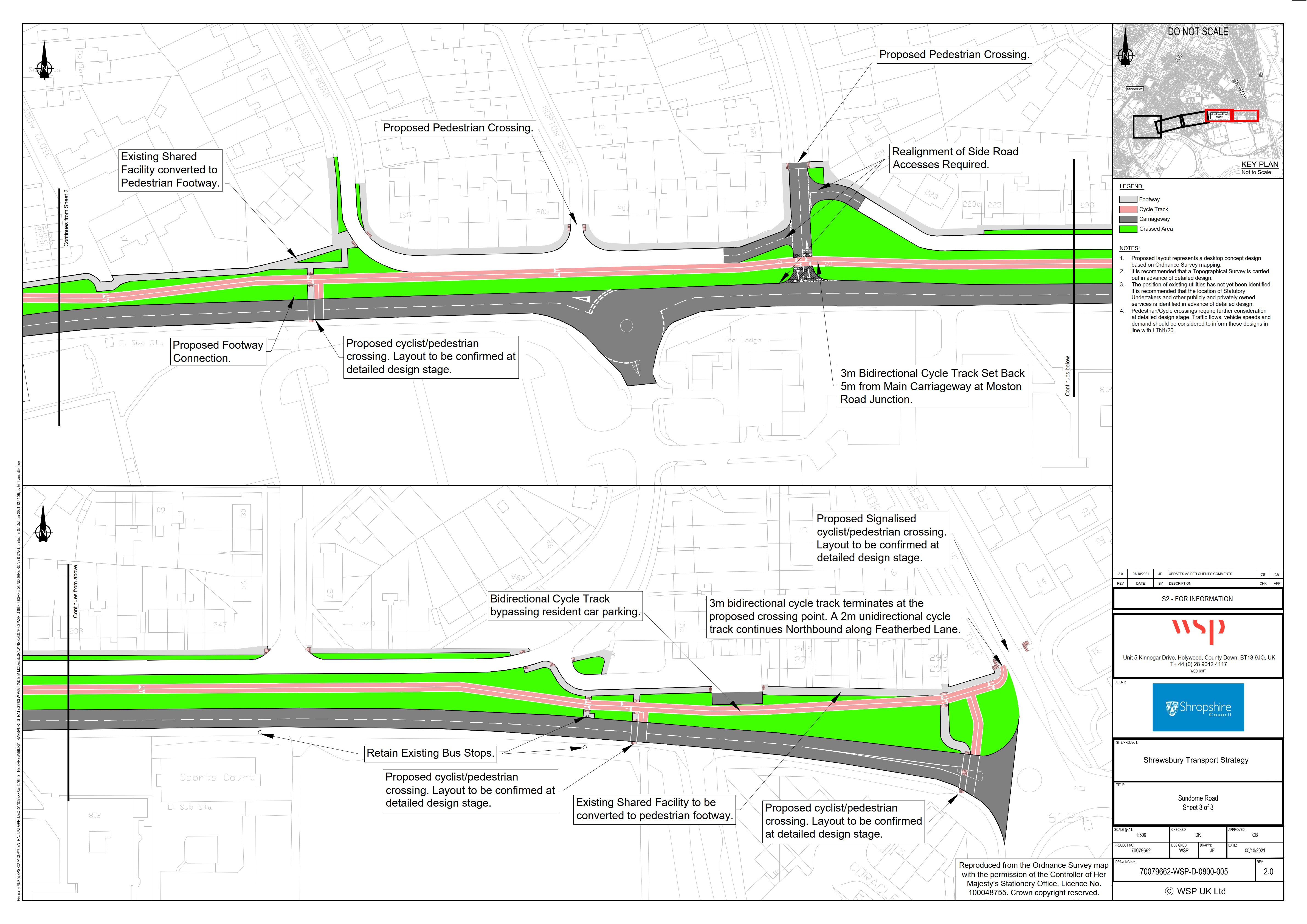 Proposed projects at this stage include enhancements to key roundabouts, including Battlefield Roundabout, Enterprise Roundabout and Heathgates Roundabout, to improve safety and capacity. Significant walking and cycling improvements are also proposed on Sundorne Road and Featherbed Lane to enhance safe and sustainable access to the Featherbed Lane schools and Shrewsbury Sports Village.