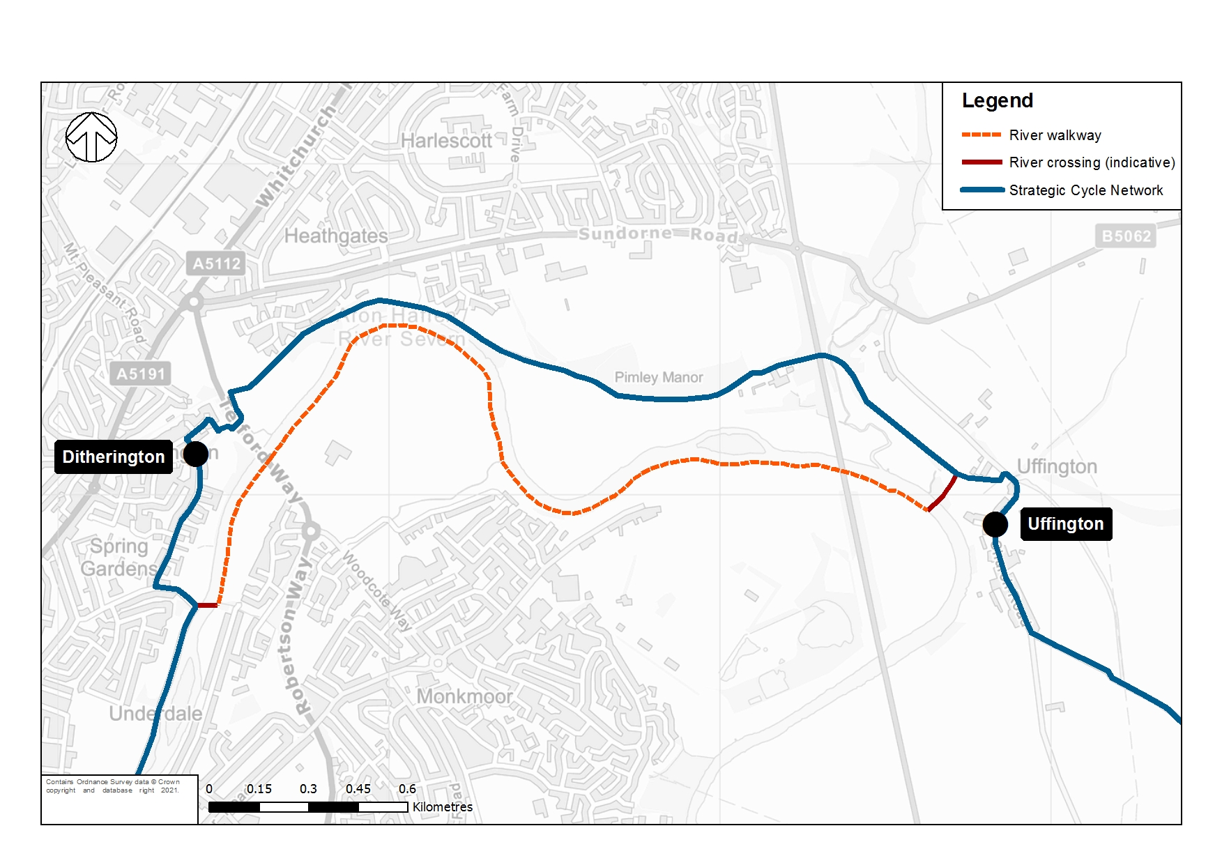 There is an opportunity to create safer, more accessible and attractive active travel routes along the River Severn. This would deliver improved active travel facilities and infrastructure along the riverside by: