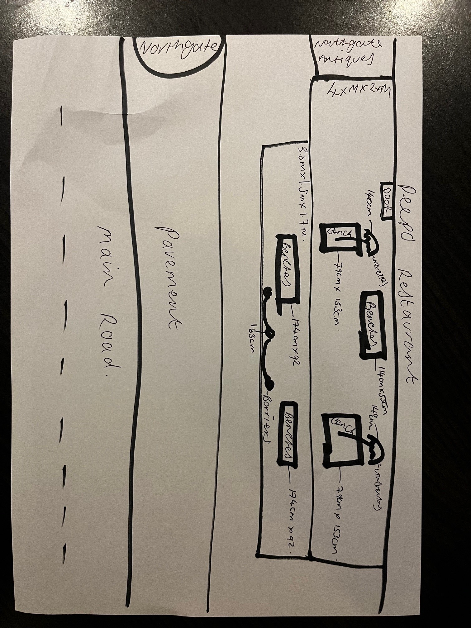 Area 1 - An area 4m x 2m containing two picnic benches on the raised brick area.