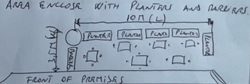 An area 10m(L) x 3.5m(W) alongside the front of the premises for the use of removable furniture, enclosed by planters and barriers.