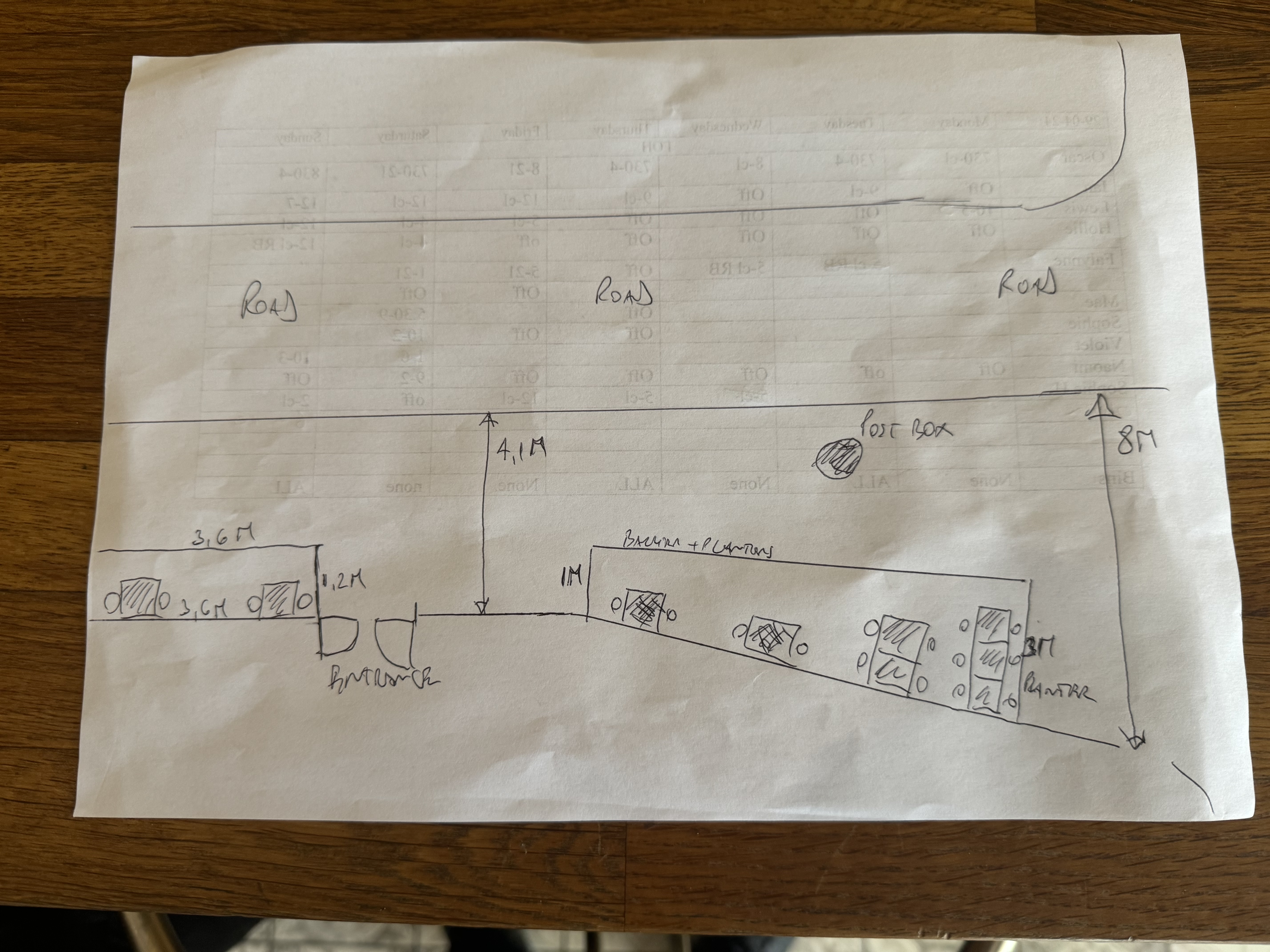 Area 1: Left of the door, 12m x1m widening to 3m with removeable tables and chairs.